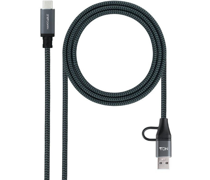 Especificacion: Ideal para conectar o cargar dispositivos con conexion USB-C o USB-A, gracias a su adaptador., El cable ofrece hasta 5 amperios de carga, para cargar distintos dispositivos., Velocidad de transferencia de datos de hasta 20Gbps, Conectores fabricados en aluminio, Compatible con Windows y Mac, El conector USB tipo C es mas facil de usar que los conectores USB de generacion anterior. Su diseño reversible le permite conectar dispositivos con cualquiera de sus caras hacia arriba., Inserte el cable de forma correcta siempre, sin equivocarse ni causar daños en el puerto., Cable mallado por material de algodon. Longitud: 3 metros, Color: Gris/Negro , Normativas: RoHS , Test de funcionamiento: 100% testado, Contenido del paquete: 1 x Cable USB 3.2 Gen2x2 20Gbps 5A/100W, USB-C+USB-A/M a USB-C/M, Gris/Negro, 3m, Informacion del embalaje: Bolsa retail con autocierre, Peso aprox. (kg): 0,122, Medidas aprox. (mm) alto/ancho/largo: 195/230/20