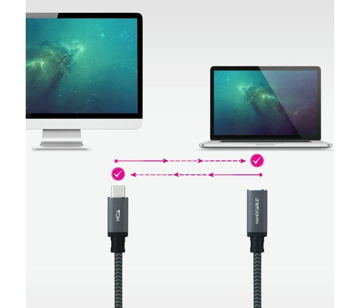 Cable prolongador USB-C 3.2 Gen2x2 20Gbp 100W/5A con conector tipo USB-C macho en un extremo y hembra en el otro.