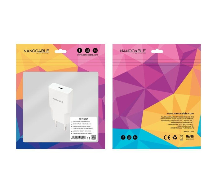 Nanocable Cargador USB-C/PD 20W Blanco