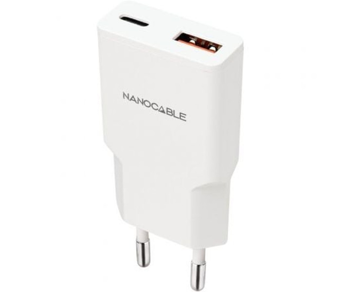 Nanocable Cargador USB-C/PD + USB-A/QC 20W Blanco