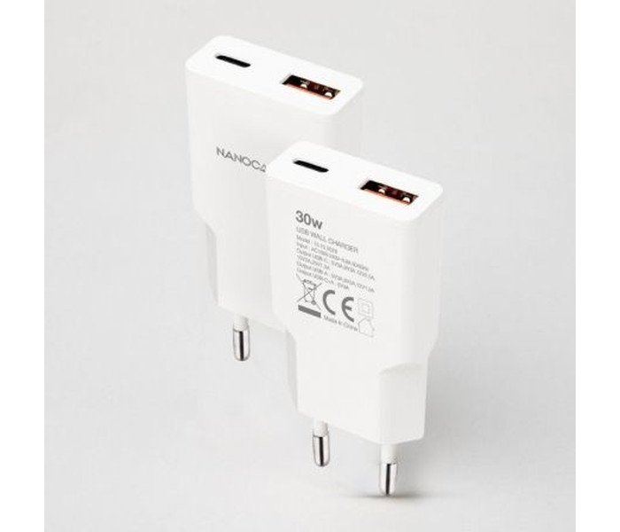 Nanocable Cargador USB-C/PD + USB-A/QC 30W Blanco