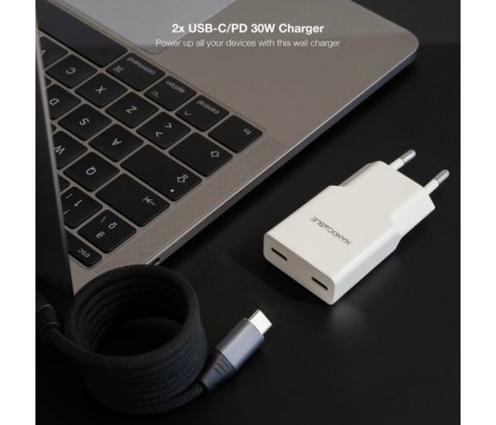 - 1 x Cargador 2xUSB-C 30W, Blanco