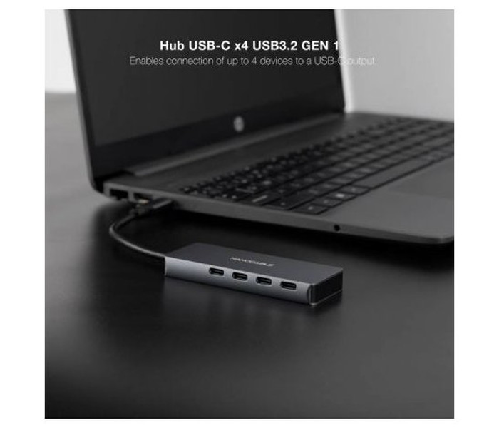 Especificaciones: Hub USB-C USB3.2 GEN 1 macho en un extremo y 4 puertos USB3.2 GEN 1 tipo C hembra en el otro Permite conectar hasta 4 dispositivos USB-C Velocidad de transferencia de datos de hasta 5Gbps No requiere software ni controladores Compatible con Windows, MacOS y Linux Longitud: 10 cm Color: Gris Normativas: RoHS y CE Test de Funcionamiento: 100% testado Contenido del Paquete: 1 x Hub USB-C Información del embalaje: Bolsa retail con autocierre Peso aprox.(kg): 0,047 Medidas aprox.(mm) alto/ancho/largo: 135/180/10