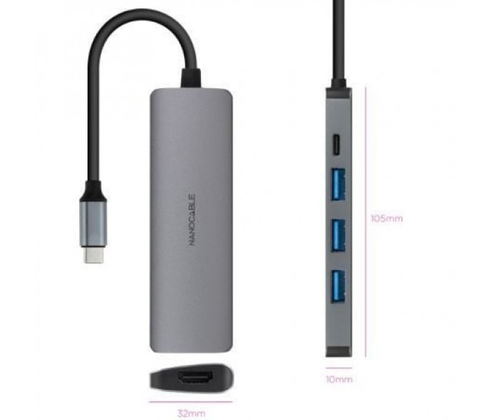 Nanocable Hub USB-C 3xUSB-A+HDMI+USB-C PD