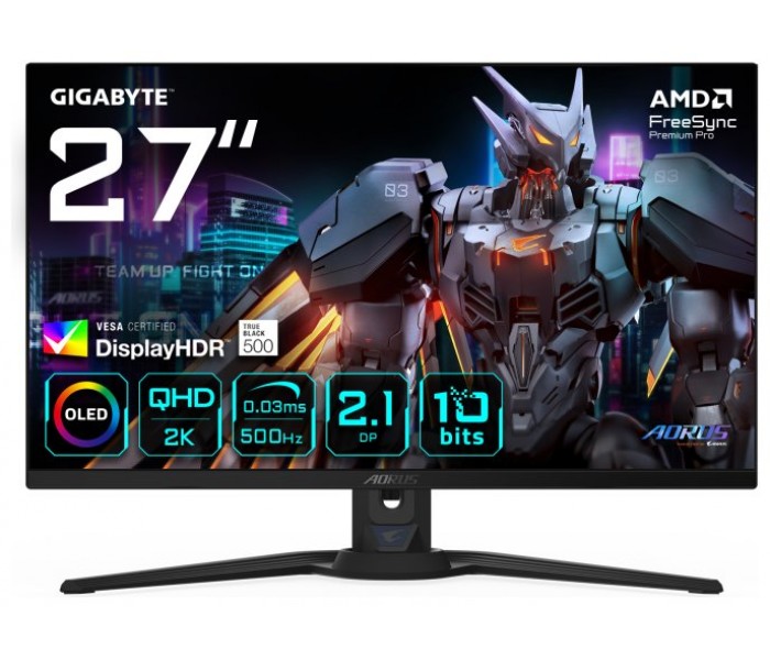 El monitor AORUS FO27Q5P OLED ofrece impresionantes visuales QHD con un contraste de 1.5M:1 y color de 10 bits. Con una tasa de refresco de 500Hz, un tiempo de respuesta de 0.03ms, tecnología AMD Freesync Pro y compatibilidad con G-SYNC, garantiza un juego fluido. Este monitor también incluye protección AI OLED, herramientas tácticas, diseño ergonómico, sistema de refrigeración y KVM integrado para control de múltiples dispositivos, perfecto para entusiastas de los videojuegos.