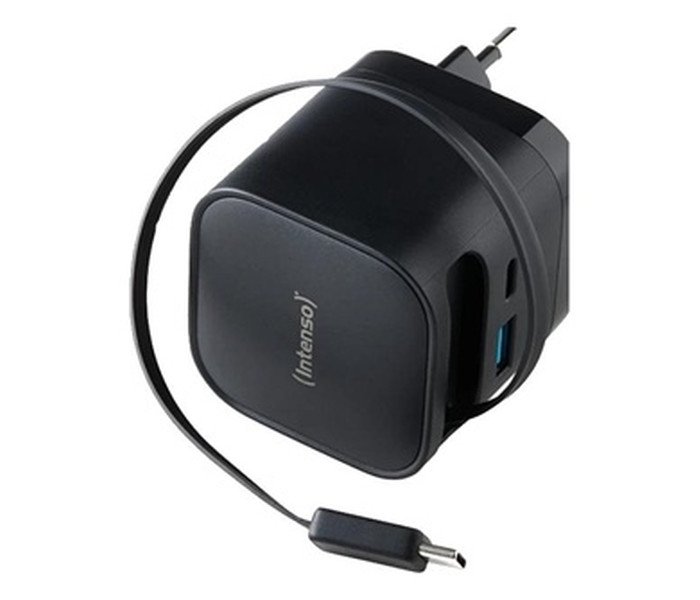 Intenso Cargador GaN W65ACIC retráctil Negro