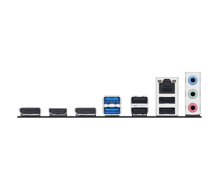 - Puertos E/S traseros: 2x USB 5 Gbps, 4x USB 2.0, 2x DisplayPort, 1x HDMI, 1x Ethernet 1Gb, 3x audio