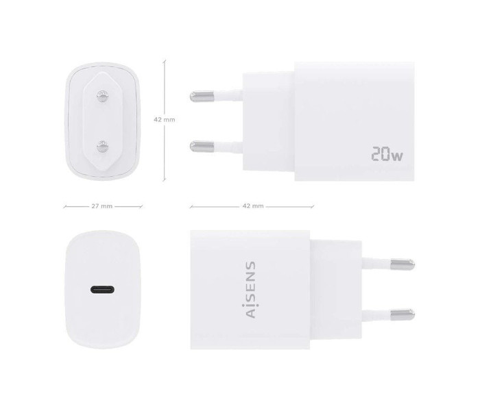 Aisens Cargador USB-C PD3.0 1xUSB-C 20W Blanco