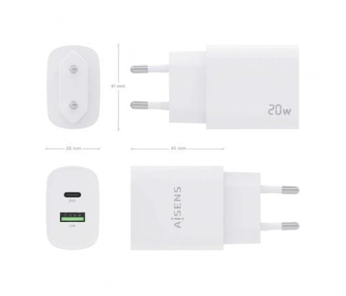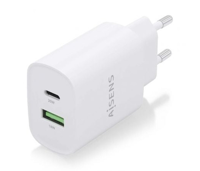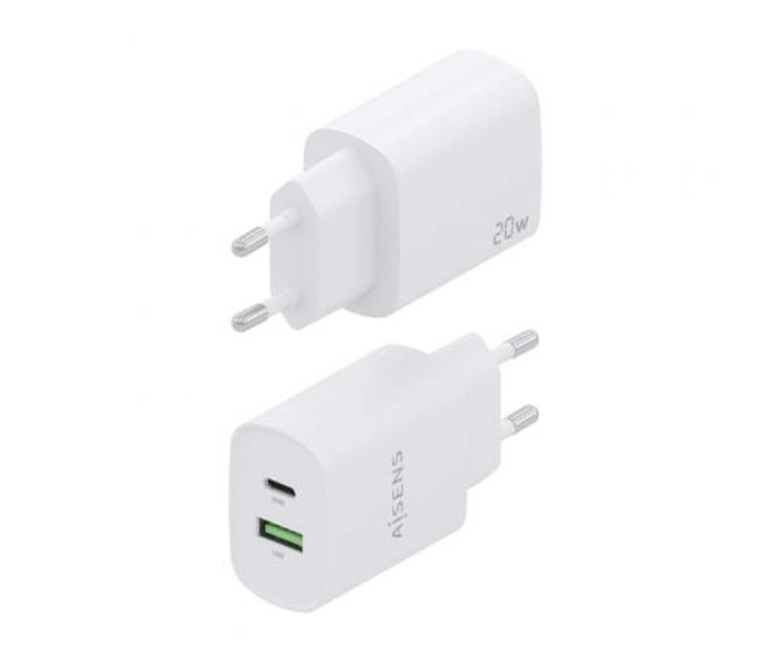 CARGADOR AISENS 20W 1XUSB-C PD3.0 1XUSB-A QC3.0 BLANCO