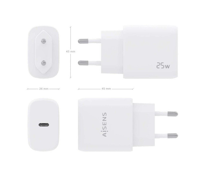 CARGADOR AISENS USB-C PD3.0 1 PUERTO 1XUSB-C 25W BLANCO