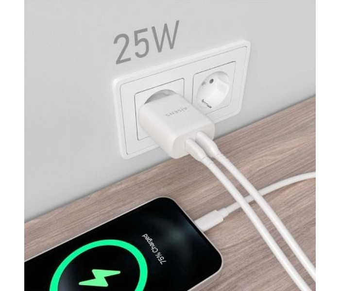 CARGADOR AISENS 25W 1XUSB-C PD3.0 1XUSB-A QC3.0 BLANCO