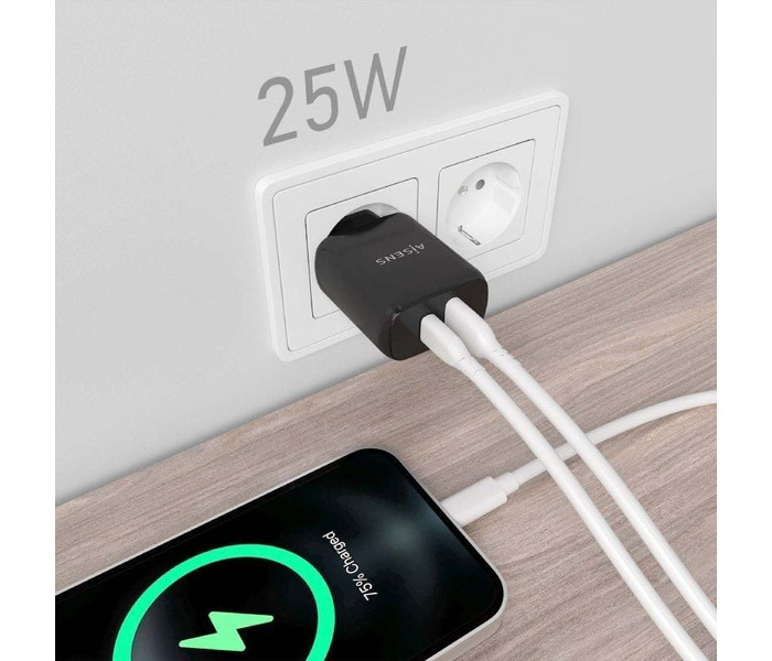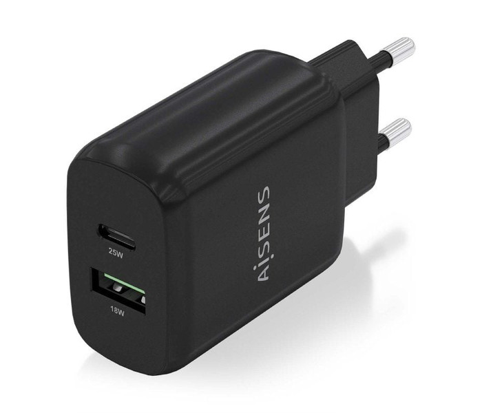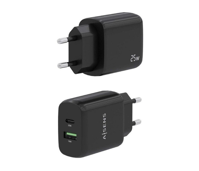 Aisens Cargador USB-C PD3.0 USB-A QC3.0 25W Negro