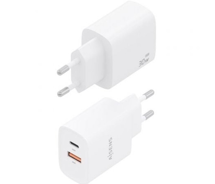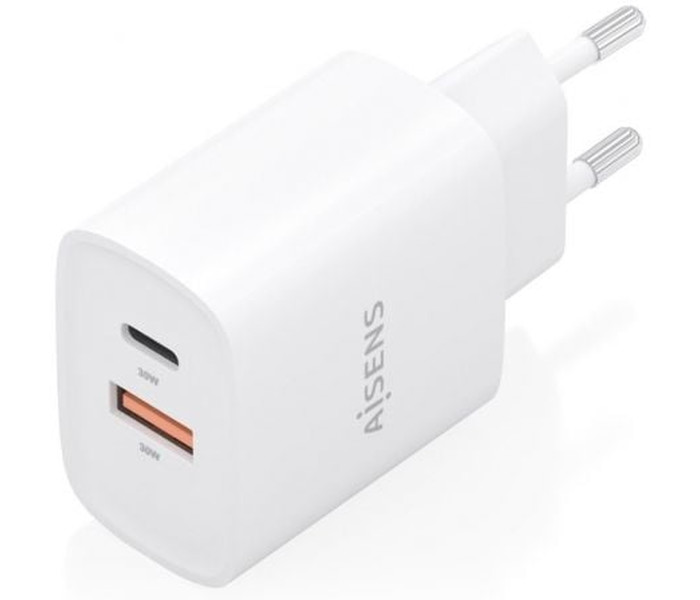 CARGADOR AISENS GAN 30W 1XUSB-C PD3.0 QC4.0 1XUSB-A QC3.0 BLANCO
