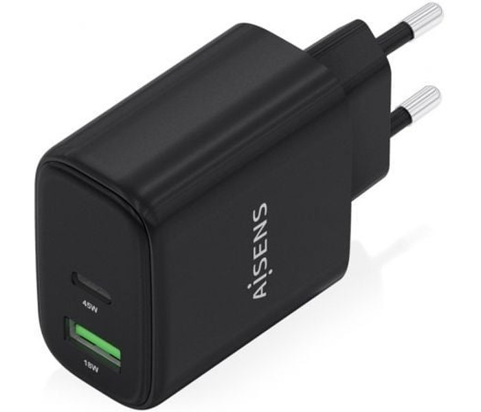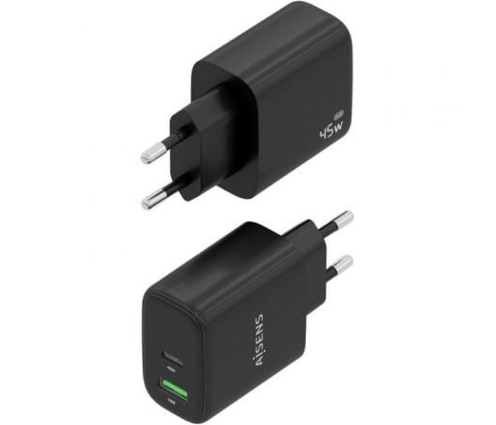 CARGADOR AISENS GAN 45W 1XUSB-C PD3.0 QC4.0 1XUSB-A QC3.0 NEGRO