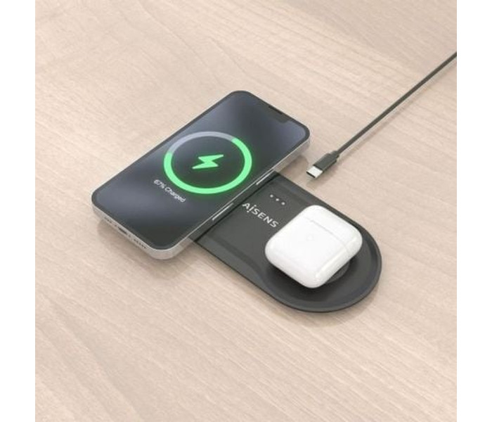 AISENS® – Cargador inalámbrico USB-C de 15W 2 en 1 para Móvil Auriculares, Negro