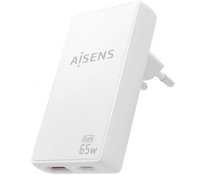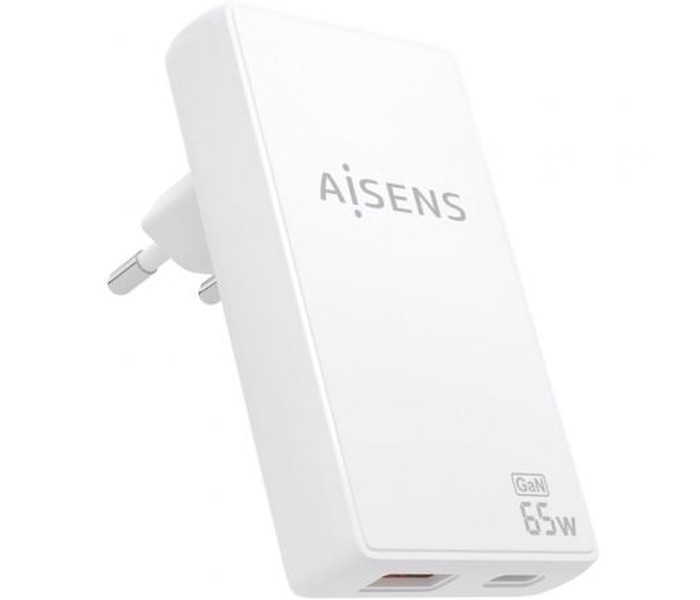 CARGADOR AISENS GAN PARED ULTRA DELGADO 65W USB-C PD3.0 QC4.0 USB-A QC3.0