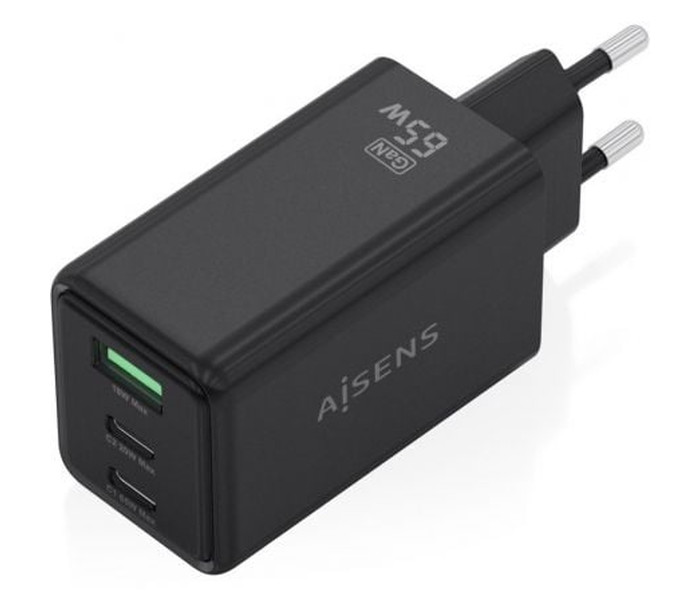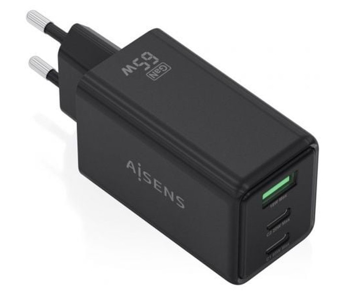 CARGADOR AISENS GAN 65W 2XUSB-C PD3.0 QC4.0 1XUSB-A QC3.0 NEGRO