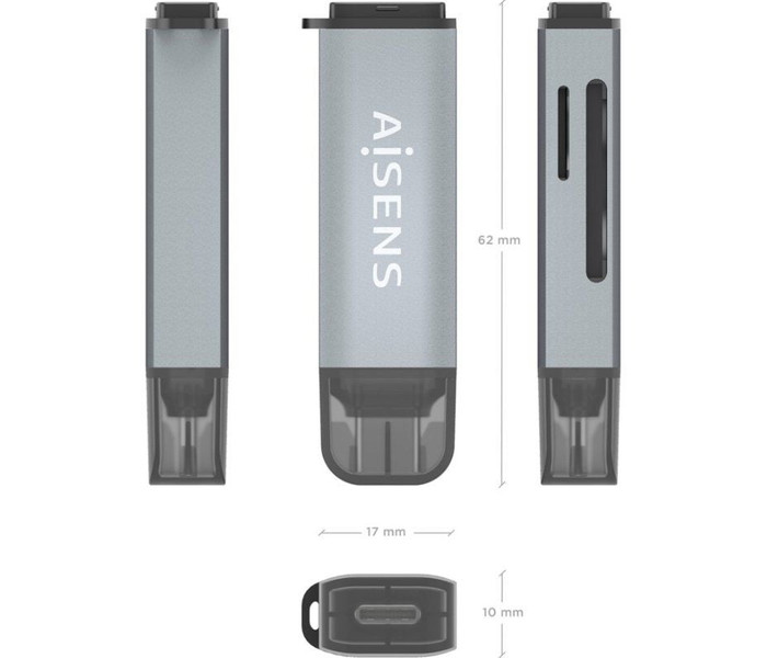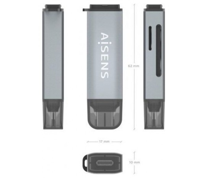 LECTOR TARJETAS AISENS SD MICRO SD MMC RS-MMC MMC MICRO USBC GRIS