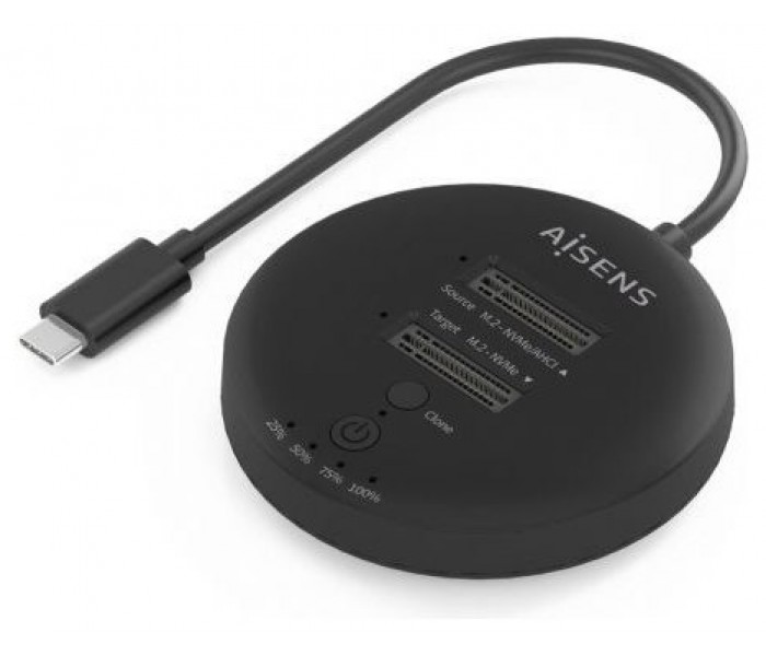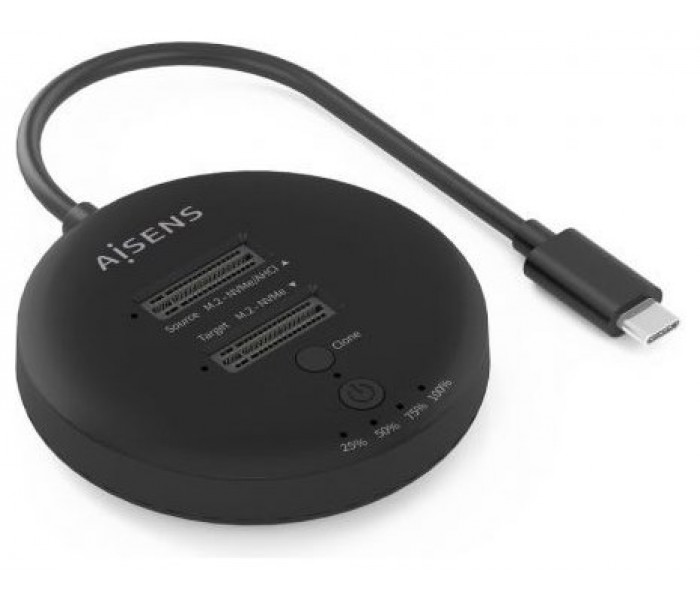ESTACION DOCKING AISENS DOBLE BAHIA NVME USB 3.2 GEN2X2 CLONE NEGRO