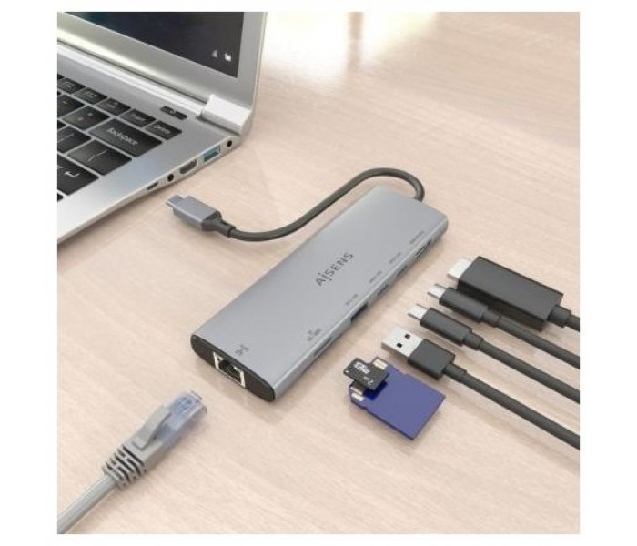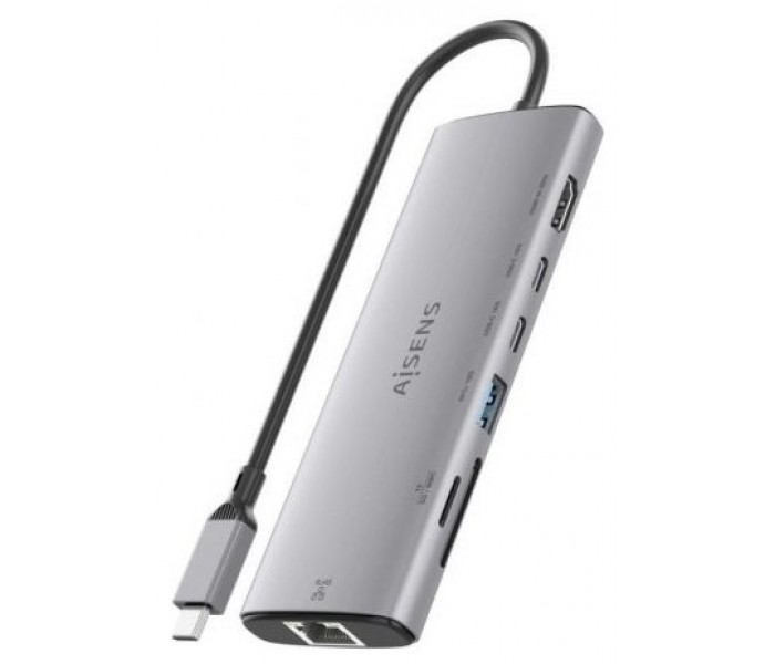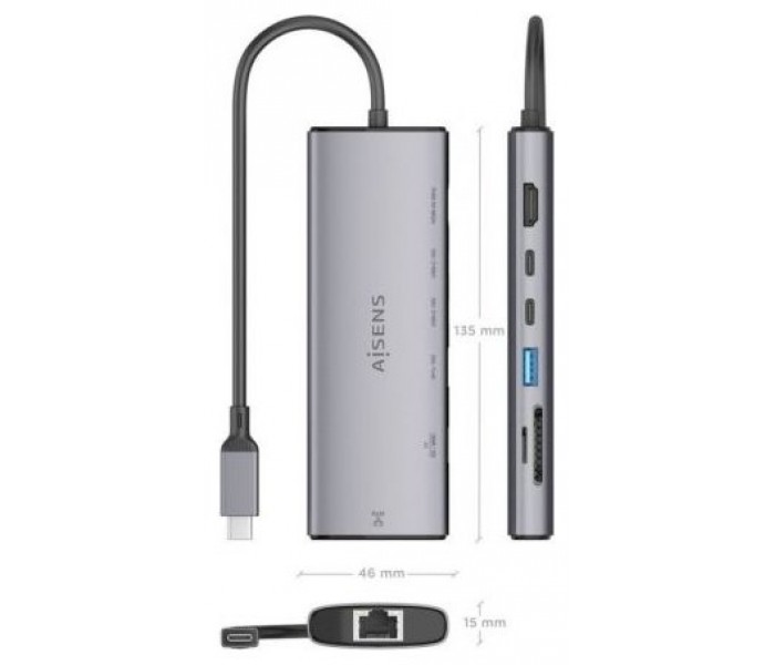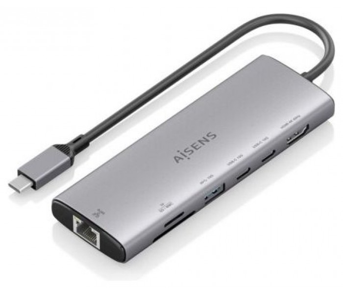 AISENS – USB-C DOCK 7 en 1, USB-C a 1xHDMI, 1xRJ45, 1xUSB-A 10G, 2xUSB-C 10G, 1xSD, 1xMICRO SD, GRIS, 20CM