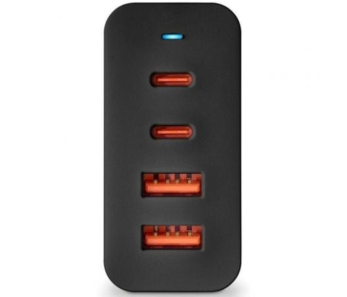 Cargador de pared con 2 salidas USB-C (PD & PPS) y 2 salidas USB-A QC 3.0 de 100W de potencia máxima para cargar dispositivos de manera rápida y eficiente.. Fabricado en GaN y materiales ignífugos es el cargador ideal para smarphones, tablets y ordenadores portátiles.. Es un cargador inteligente que permitirá una carga más eficiente de la batería del dispositivo alargando la vida del mismo.. Su diseño con 4 puertos permite cargar 4 dispositivos simultáneamente de forma segura y estable minimizando el tiempo de espera. . Compatible con todos los móviles y dispositivos de carga USB.. Diseño compacto y portátil.. Potencia de entrada: 100-240V, 50/60Hz, 3A. Salida:. . USB-C 1/2: PD 3.0. 5V-3A, 9V-3A, 12V-3A, 15V-3A, 20V-5A (100W Max.). PPS: 3.6-21V / 4.7A. USB-A 1/2: QC 3.0. 5V-3A, 9V-3A, 12V-2.5A, 20V-1.5A (30W Max.). C1+C2: PD60W+PD20W. C1/2+A1/2: PD60W+QC30W. C1+C2+A1/2: PD60W+PD20W+QC18W. C1/2+A1+A2: PD60W+7.5W+7.5W. A1+A2: 7.5W+7.5W. C1+C2+A1+A2: PD60W+PD20W+7.5W+7.5W6
