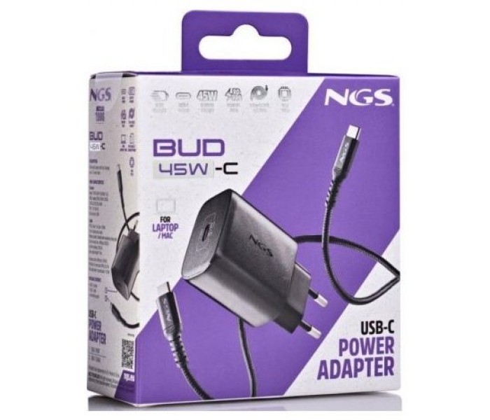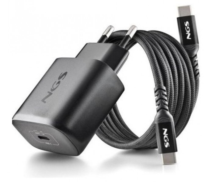 CARGADOR PARED GaN2 USB-C + CABLE 45W NEGRO NGS