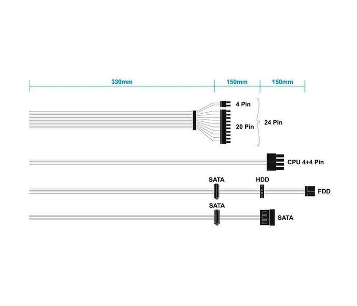 - 1 conector SATA + 1 conector Molex + 1 conector mini-Molex (tipo Floppy, 4 pines) 330+150+150mm