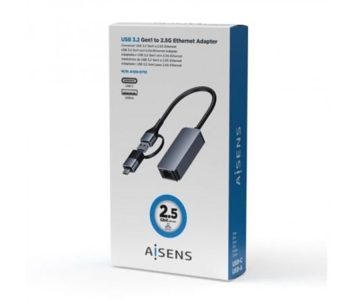 CABLE CONVERSOR AISENS USB3.2 GEN1 USB-A+USB-C A ETHERNET 2.5G GRIS 15CM