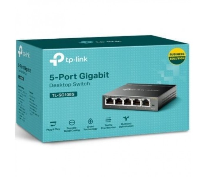 TP-LINK TL-SG105S. Tipo de interruptor: No administrado, Capa del interruptor: L2. Puertos tipo básico de conmutación RJ-45 Ethernet: Gigabit Ethernet (10/100/1000), Cantidad de puertos básicos de conmutación RJ-45 Ethernet: 5. Bidireccional completo (Full duplex). Tabla de direcciones MAC: 2048 entradas, Capacidad de conmutación: 10 Gbit/s. Estándares de red: IEEE 802.1p,IEEE 802.3,IEEE 802.3ab,IEEE 802.3u,IEEE 802.3x. Montaje de pared