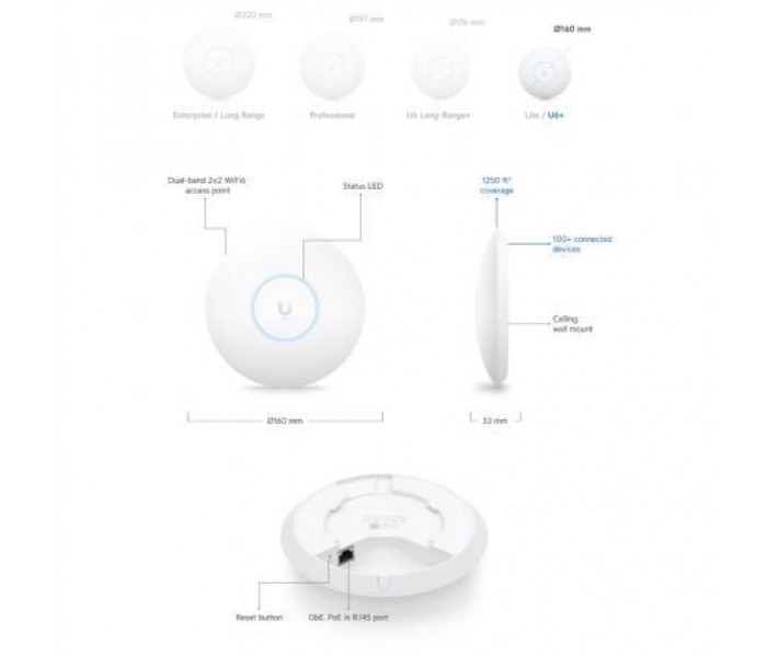 UBIQUITI WIRELESS ACCESS POINT U6+ WIFI6 PoE PARED/TECHO