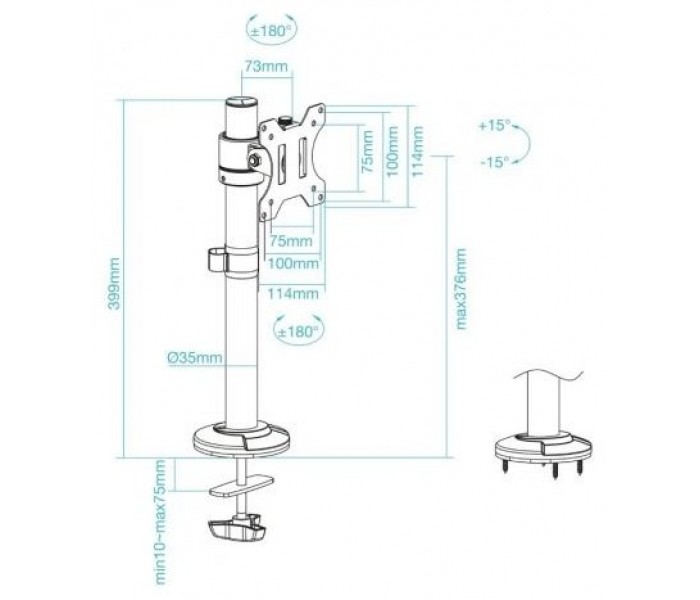 - Interfaz de panel de montaje: 75 x 75,100 x 100 mm