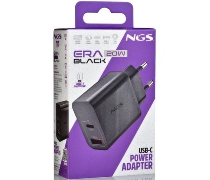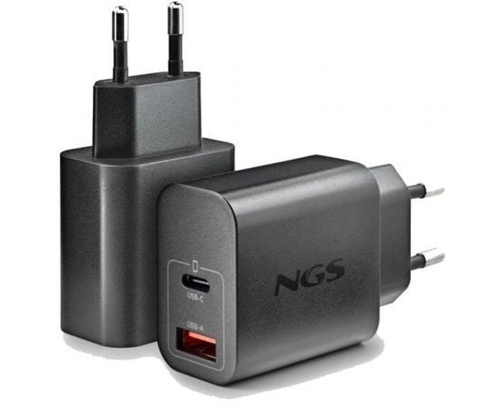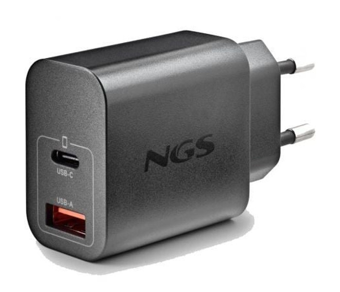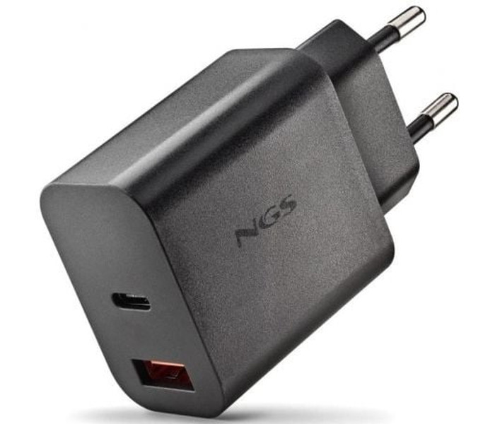 CARGADOR PARED GaN USB-C + USB-A 20W NEGRO NGS