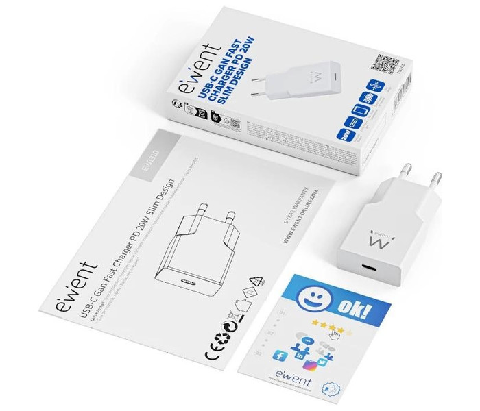 EWENT EW1310 Cargador rápido USB-C 20W Tec.Ganfast