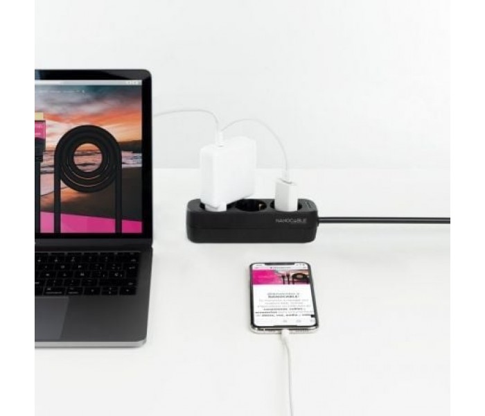 - 1 x Regleta de enchufes con 3 tomas, 1.4 m, Color Negro