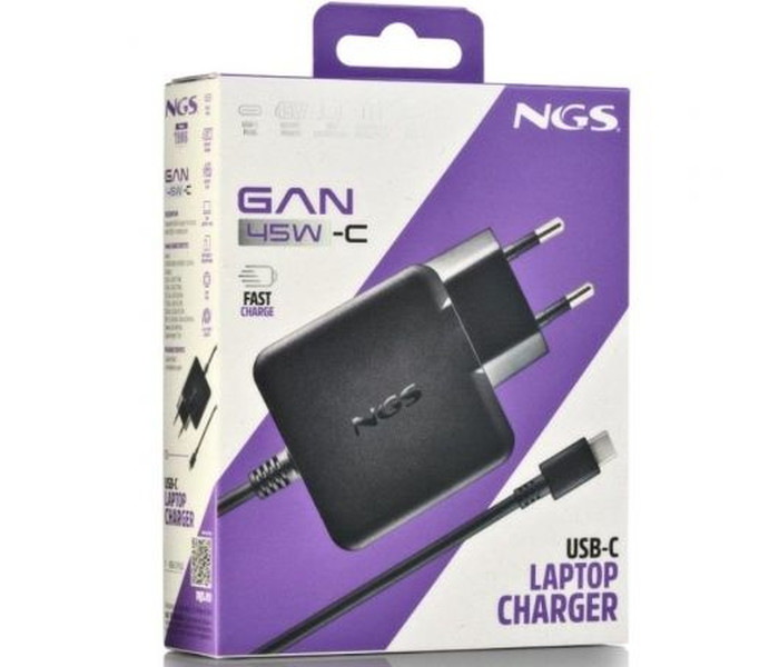 CARGADOR PARED GaN USB-C 45W NEGRO NGS