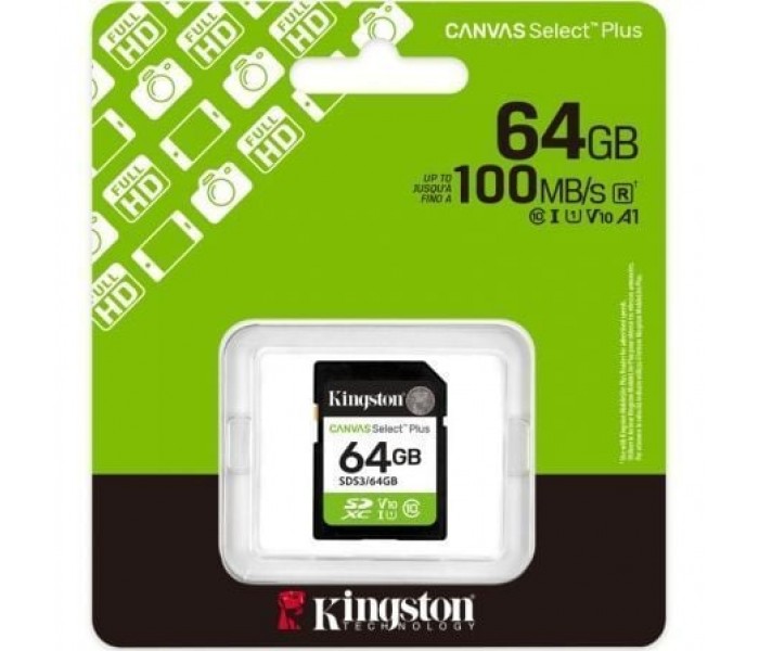 SECURE DIGITAL HC 64 GB CANVAS SELECT PLUS GEN3 CLASE10 KINGSTON