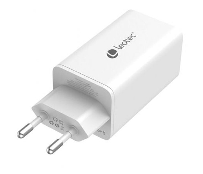 LEOTEC CARGADOR 65W GaN CARGA RAPIDA 2 USB TIPO-C PD 1 USB-A BLANCO