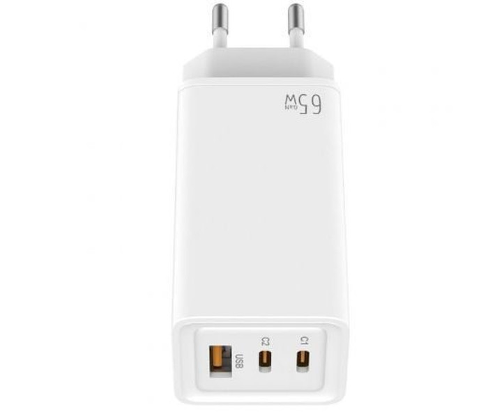 Cargador 65W GaN 2 USB-C PD + 1 USB-A Blanco