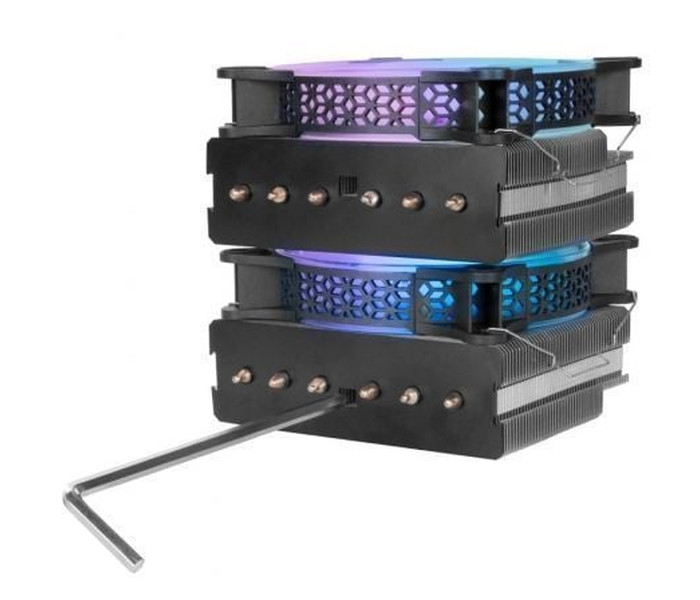 Capacidad de refrigeración excepcional gracias a su diseño en doble torre, duplicando la capacidad de transferencia térmica y maximizando el rendimiento de los 6 heatpipes incorporados.