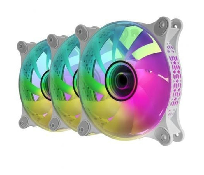 Kit de 3 ventiladores ARGB MF-3D con espejo infinito, el más avanzado controlador ARGB iluminado con mando a distancia RF, soporte de hasta 10 ventiladores ARGB, compatibilidad con placas base ARGB y control total de velocidad y de la iluminación con hasta 220 efectos.. . Características principales:. . ESPEJO INFINITO 3D. El ventilador cuenta con unos espejos multicapa con iluminación ARGB que te hipnotizarán con un efecto de profundidad infinita.. . CONTROLADOR ARGB ILUMINADO. El controlador ARGB más espectacular: cuerpo translúcido iluminado, hasta 220 efectos de iluminación preprogramados, control de velocidad de los ventiladores, 10 ventiladores ARGB simultáneos, cable para conexión con placas base ARGB.... . VENTILACIóN SUPERIOR, SILENCIO ABSOLUTO. Excelente rendimiento de ventilación con el mínimo ruido gracias a su diseño único aerodinámico de las aspas con un sistema de doble nivelación para evitar turbulencias, unos rodamientos FDB de larga duración y baja fricción y unas juntas de goma anti-vibraciones. La tecnología más avanzada en ventiladores a tu alcance.. . ILUMINACIóN ARGB 360º. Impresionante iluminación ARGB 360º con iluminación interior y exterior en ventiladores y controladora. . 3X VENTILADORES ARGB MF-3D CON ESPEJO INFINITO. Los ventiladores ARGB MF-3D no solo tienen una iluminación y aspecto espectaculares, sino que están fabricados con los mejores rodamientos y materiales, además de un diseño de aspas optimizado y un sistema anti-vibraciones. Todo ello para garantizar una refrigeración excelente con el mínimo ruido.. . MANDO A DISTANCIA RF. Controla la iluminación y velocidad de los ventiladores directamente con el mando a distancia RF incluido. Gracias a su tecnología inalámbrica utilízalo sin problemas en cualquier sitio donde estén instalados.. . COMPATILIDAD TOTAL. El MF-3D permite una increíble variedad de posibilidades de control: mediante el conector ARGB para control a través de placa base o mediante el mando de control para elegir entre 220 efectos de iluminación predefinidos. HUB compatible con hasta 10 ventiladores ARGB 5V 6 pines y con placas base Addressable RGB con sistemas Asus Aura Sync, Mystic Light Sync o RGB Fusion, permitiéndote un absoluto control de la iluminación y una libertad absoluta para cualquier uso.. . Especificaciones:. . Dimensiones: 120x120x25mm. Peso: 125g. Tamaño: 120mm. Nº de aspas: 9. Iluminación: RGB Addressable. Presión del aire: 1.05mm- H2O. Rodamientos: Hidráulicos. Velocidad: 1100 ± 10% RPM. Flujo de aire: 31 CFM. Nivel sonoro: 14dB(A). Potencia máx.: 1.8W. Conexión: 6 pin (Ventilador) / Sata + 5V Adressable RGB 3 pin + VDG 3 pin (HUB). Voltaje: DC12V. Corriente: 0.15A