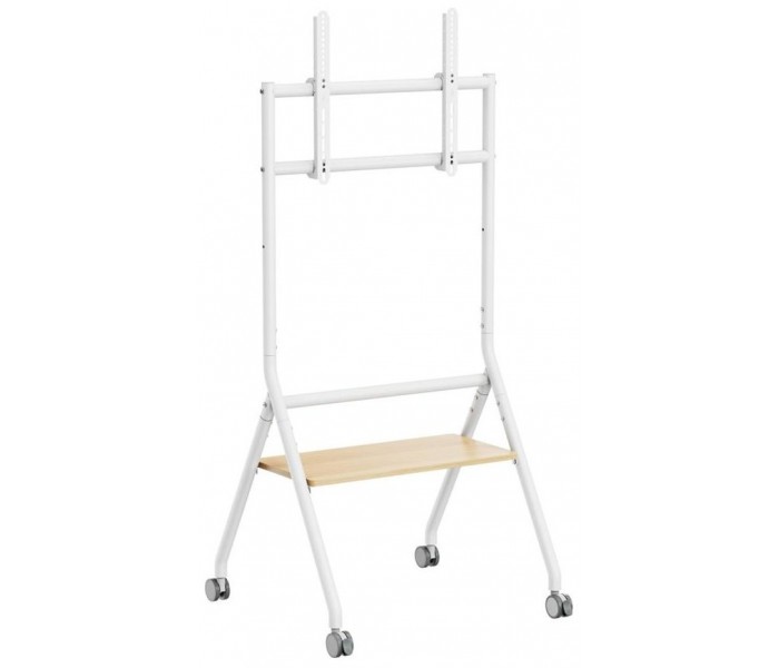 El EW1582 está equipado con ruedas robustas que permiten un desplazamiento suave sobre distintas superficies. Cada rueda cuenta con mecanismo de bloqueo para fijar el soporte en la posición deseada sin riesgo de movimiento involuntario. Incluye también un estante adicional para dispositivos como reproductores multimedia o mandos, manteniendo el entorno ordenado y funcional.