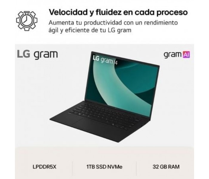 El LG gram 14ZD90T redefine la movilidad profesional con un equilibrio perfecto entre rendimiento, portabilidad y autonomía. Diseñado para usuarios exigentes que buscan potencia en un chasis ultraligero, este portátil de 14 pulgadas es ideal para trabajar en remoto, viajar o estudiar sin limitaciones. Su combinación de procesador Intel® Core? Ultra7, gráficos integrados Intel® Arc?, 32 GB de RAM LPDDR5X y almacenamiento SSD NVMe de 1 TB lo convierte en una herramienta veloz, fiable y lista para el futuro.