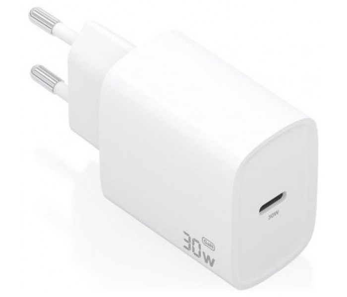Cargador GaN USB-C 30W para cargar portátiles, móviles, cámaras y tablets etc. Diseño muy elegante, moderno y práctico.