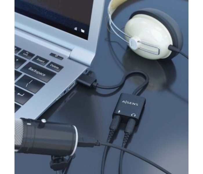 CONVERSOR AISENS USB-A A AUDIO 48KHZ USB-A/M-2XJACK 3.5/H NEGRO 10CM