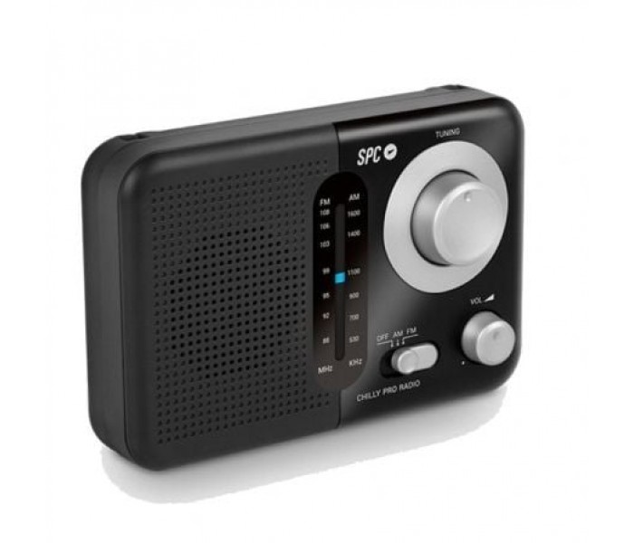 | Características | Alimentación - Alimentación AC: 230V~50Hz. - Rango de frecuencias: FM (87.5-108 MHz) AM (522-1620 kHz). - Entrada auxiliar tipo Jack de 3.5mm. - Potencia de salida: 0.8W RMS. - Impedancia: 8 Ohm Ω. - Asa de sujeción. - Antena telescópica. - También funciona con 3 pilas de 1.5V del tipo "C" LR14. Pilas no incluidas Dimensiones y peso - Dimensiones: 210 x 48 x 138 mm. - Peso: 548 g. Contenido - Radio FM/AM SPC Valdi. - Cable de alimentación AC. - Manual de usuario. |