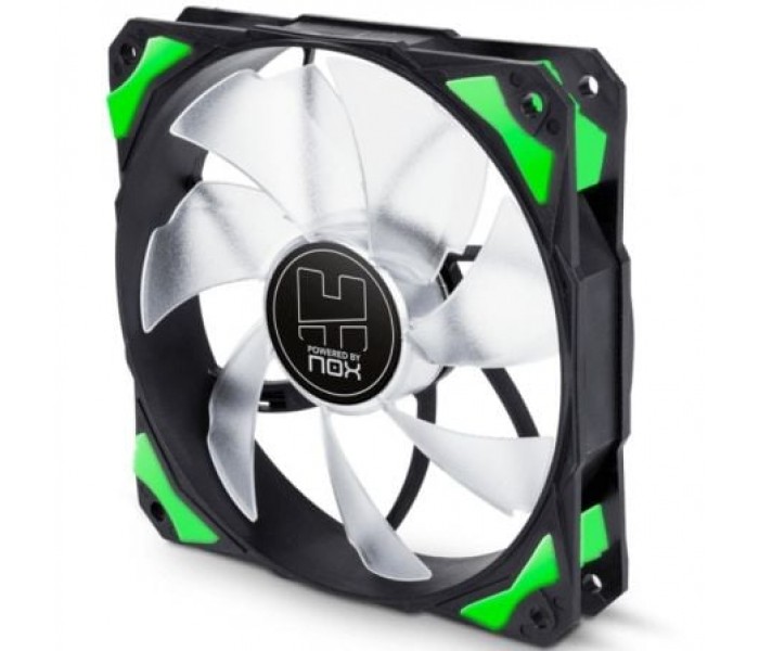 H-Fan son los ventiladores de la serie Hummer. Ventiladores de 120 mm disponibles con LEDs en cuatro colores diferentes que te proporcionarán una excelente ventilación de manera eficaz y silenciosa.\\n\\n- 7 aspas traslúcidas\\n- Adaptador reductor de velocidad incluido\\n- Rodamientos hidráulicos\\n- LEDs brillantes\\n- Diseño silencioso optimizado\\n- Esquinas con soporte de goma\\n\\nFlujo óptimo de aire\\n\\nSus aspas aerodinámicas te ofrecen una mínima resistencia al aire, proporcionando la mejor ventilación posible a todos los componentes y garantizando un continuo flujo de aire en el interior del PC.\\n\\nVentilación silenciosa\\n\\nH-Fan LED cuenta con esquinas con soporte de goma que absorben las vibraciones ofreciendo un alto rendimiento a un bajo nivel sonoro.\\n\\nIncluye un cable adaptador para reducir la velocidad de rotación del ventilador de 1600 a 1000 RPM.\\n\\nDiseño atractivo\\n\\nLa iluminación LED en color verde y su diseño innovador convierten a los ventiladores de Hummer en una opción muy atractiva para personalizar el PC.