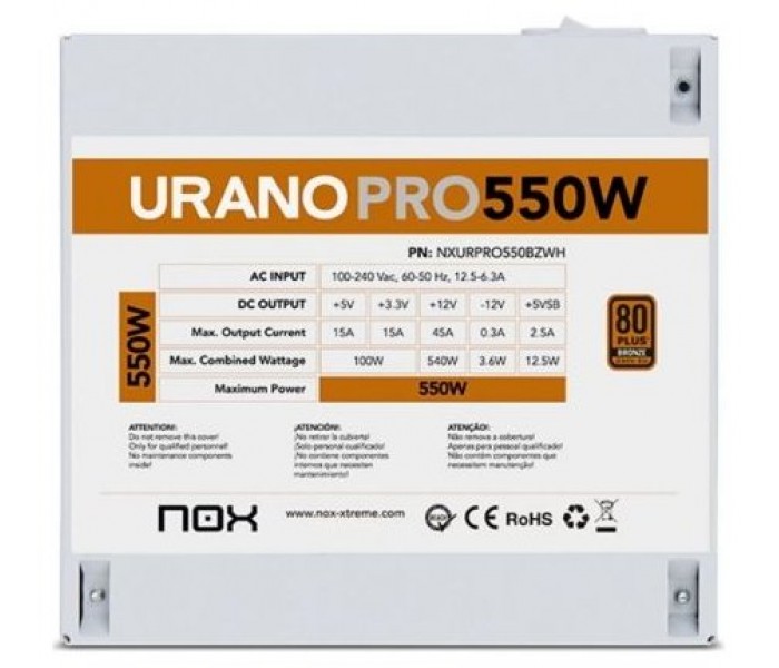NOX Fuente ATX Urano PRO 550W Bronze Blanco