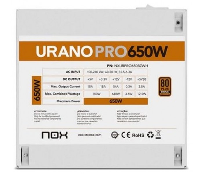 FUENTE ALIMENTACION ATX NOX URANO PRO 650W BRONZE BLANCO