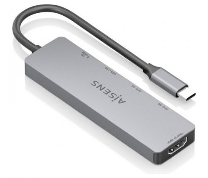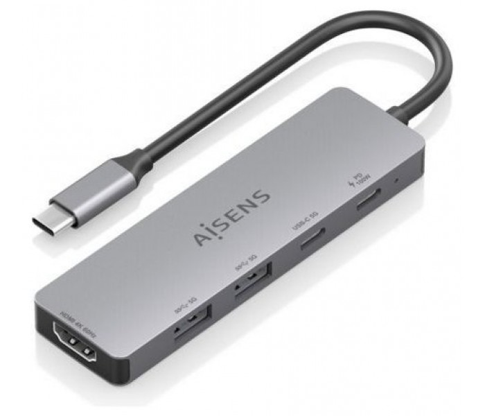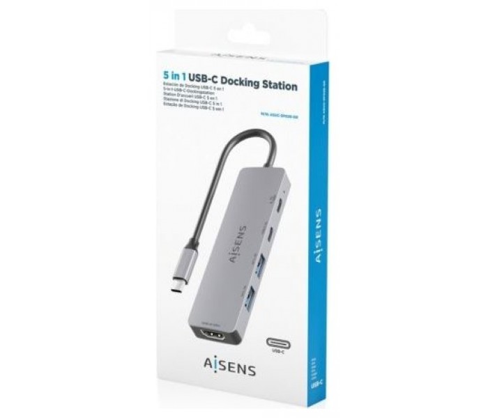 USB-C DOCK AISENS 5 EN 1 HDMI 2XUSB-A USB-C USB-C PD GRIS 15CM
