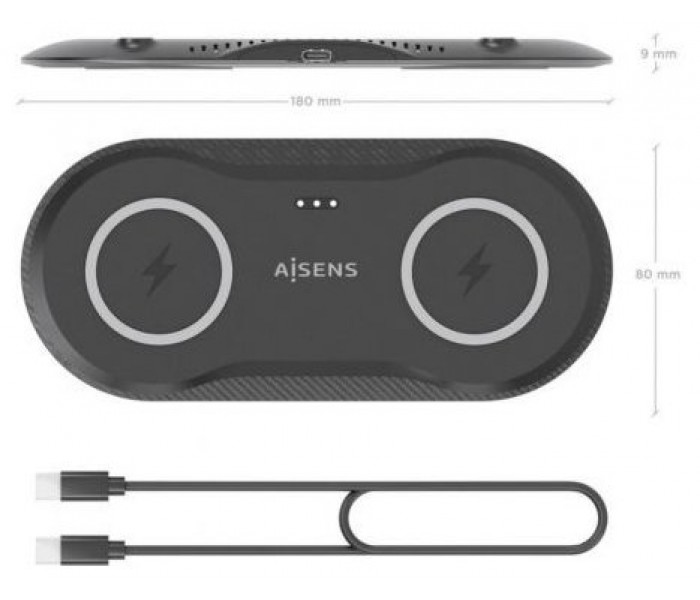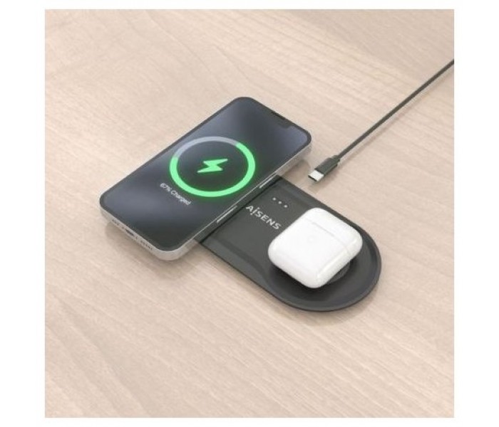Aisens Cargador Inalámbrico USBC 15W 2 en 1 Negro